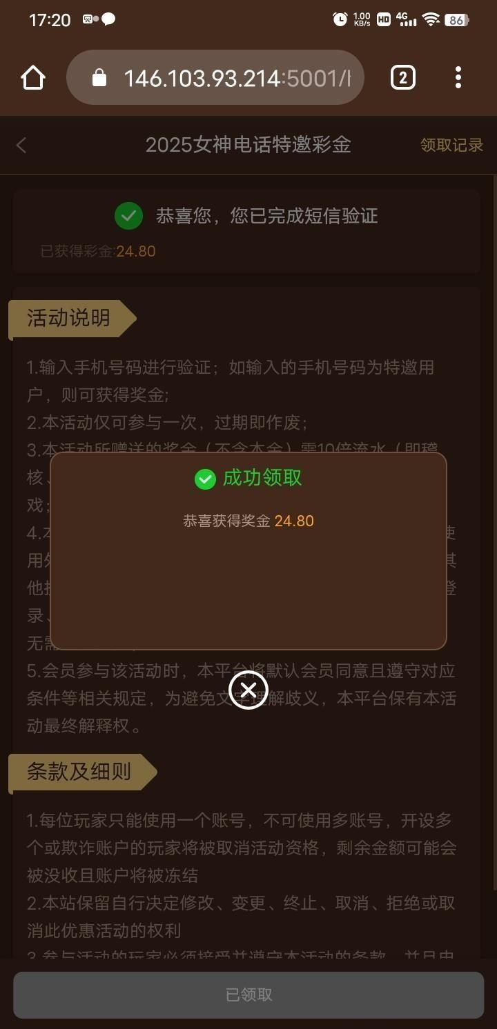 之前领过88,现在重置了又领到24,半黑台吧勿充值,56v.com
