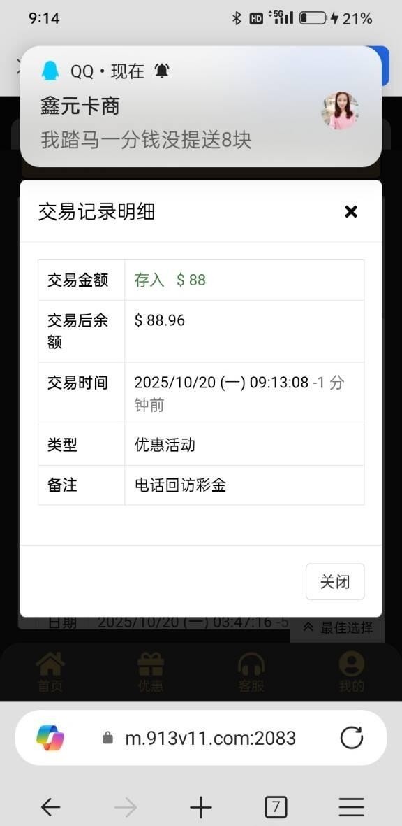 没接到电话 我登录账号送8块,我小弟登录账号她妈的送88。网址913.com,