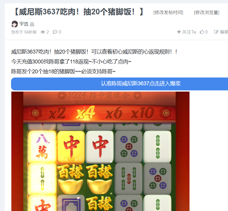 恭喜大佬支持!抽20个18猪脚饭!威尼斯3637有水!!兄弟们干就对了!