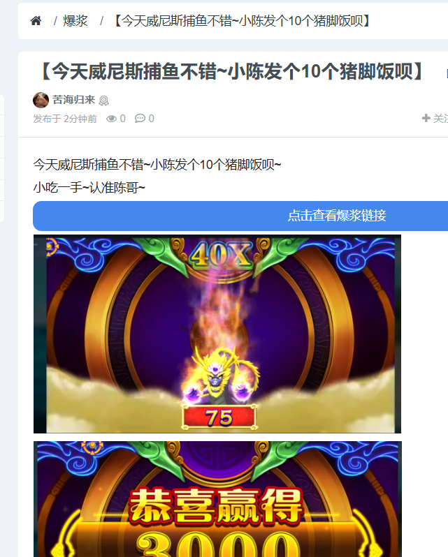 恭喜大佬吃肉!抽10个18猪脚饭!威尼斯3637有水!!兄弟们跟着干就对了!