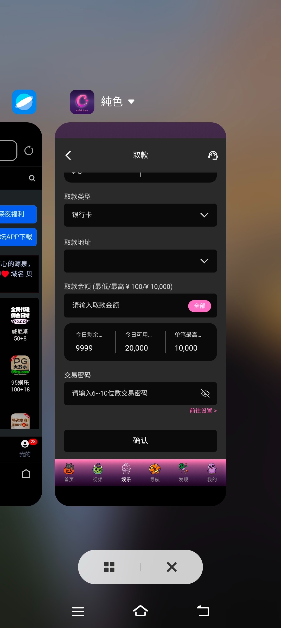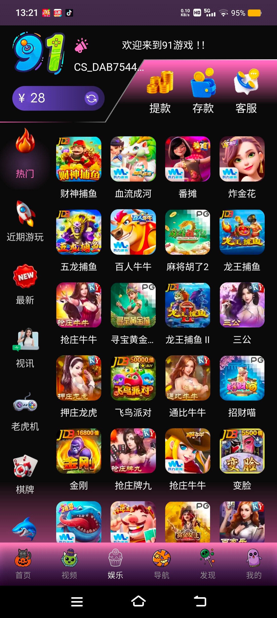 之前下载过纯色的点击娱乐那里进去查看我送了28要打到100才可以提只能题卡我打挂壁了