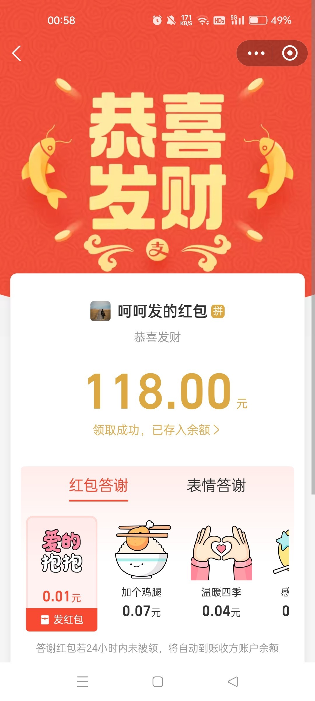 收到小陈的返现