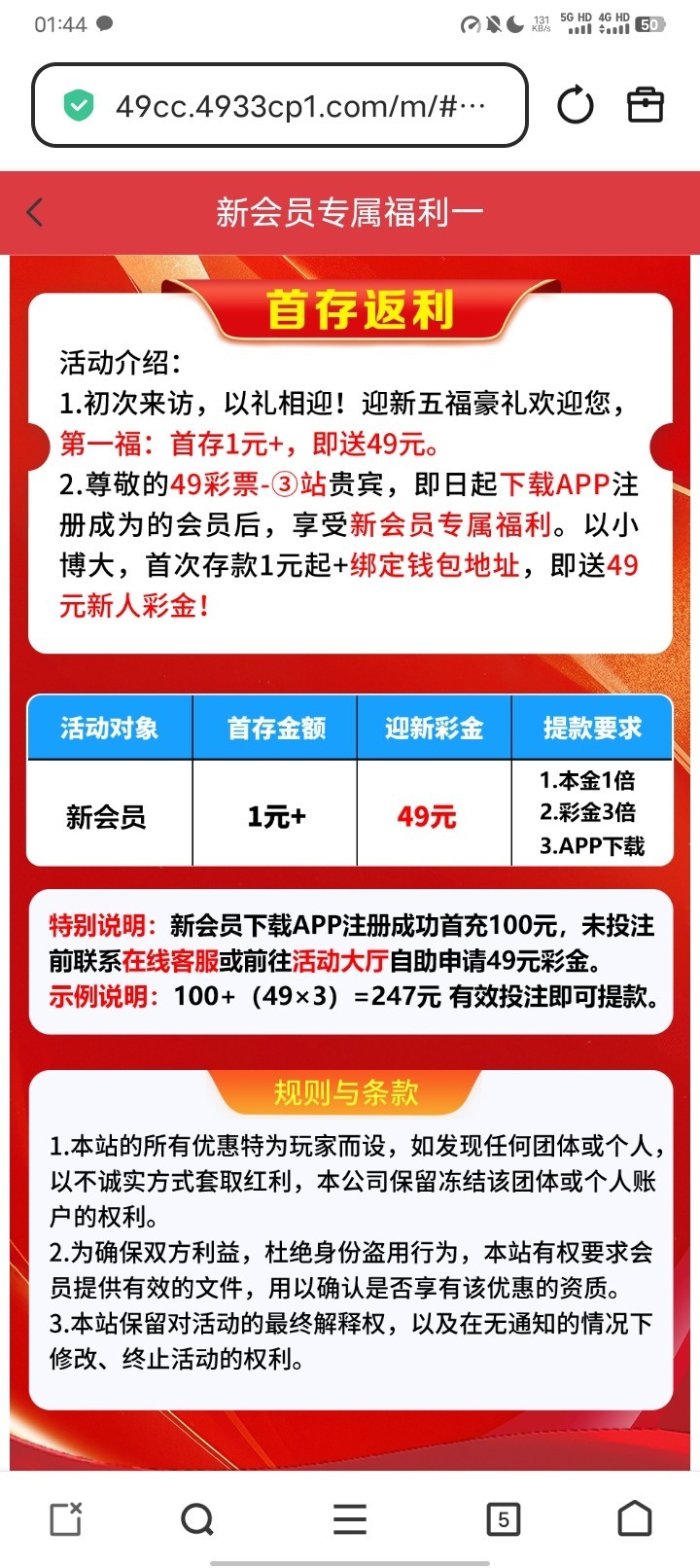 新人充值1+送49