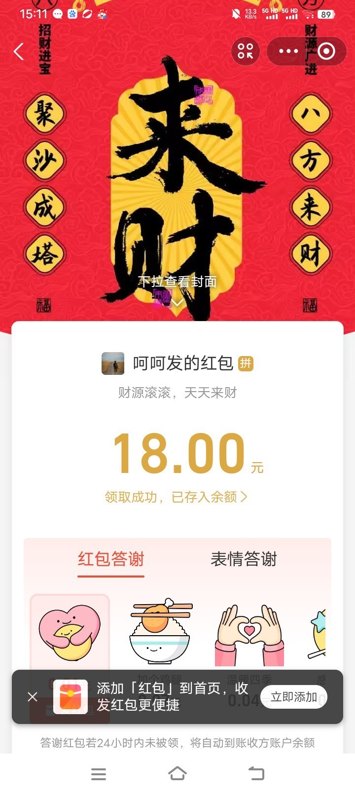 中了18元红包