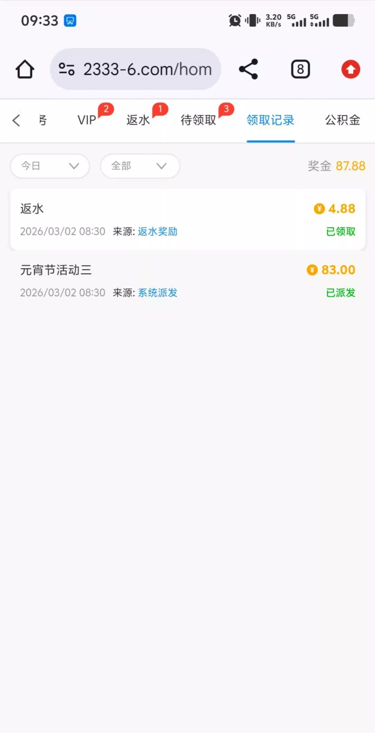 2月份有充值的可以去领元宵彩金,我是废物 领了88打不出来链接2333.com