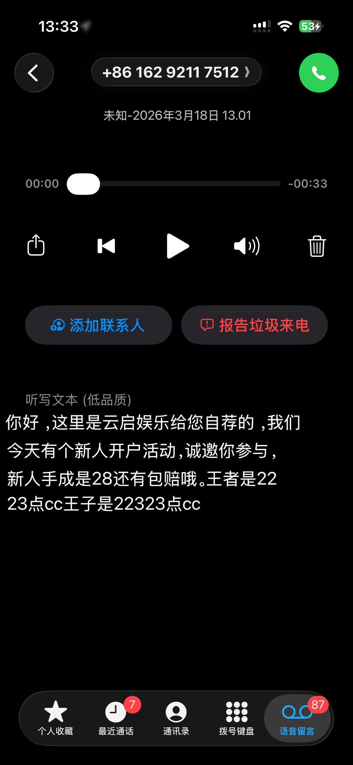 电话特邀送了我28,没打出来